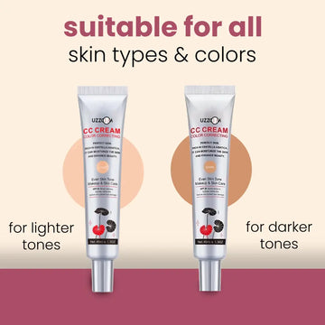 Uzzoom Color Correcting CC Cream is thoughtfully formulated to work beautifully on all skin types – whether you have dry, oily, or sensitive skin. It effortlessly adapts to both light and dark skin tones, providing a flawless, even coverage that hydrates and conceals imperfections.